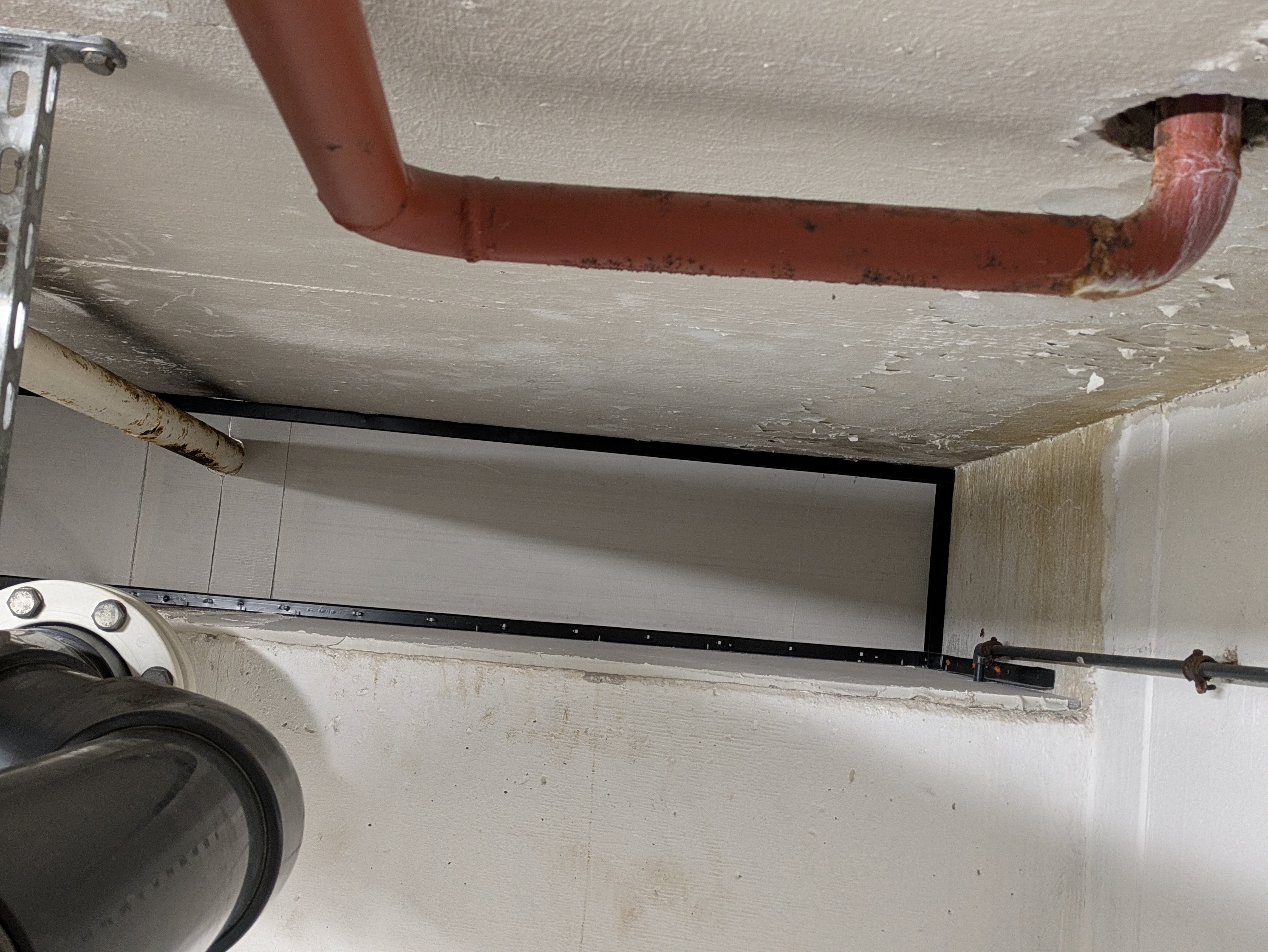 Klappen, die frei bleiben mussten. Ebenfalls musste eine Revisionsklappe eingebaut werden, über die eine Person zur Reinigung klettern kann. Wir hatten Glück