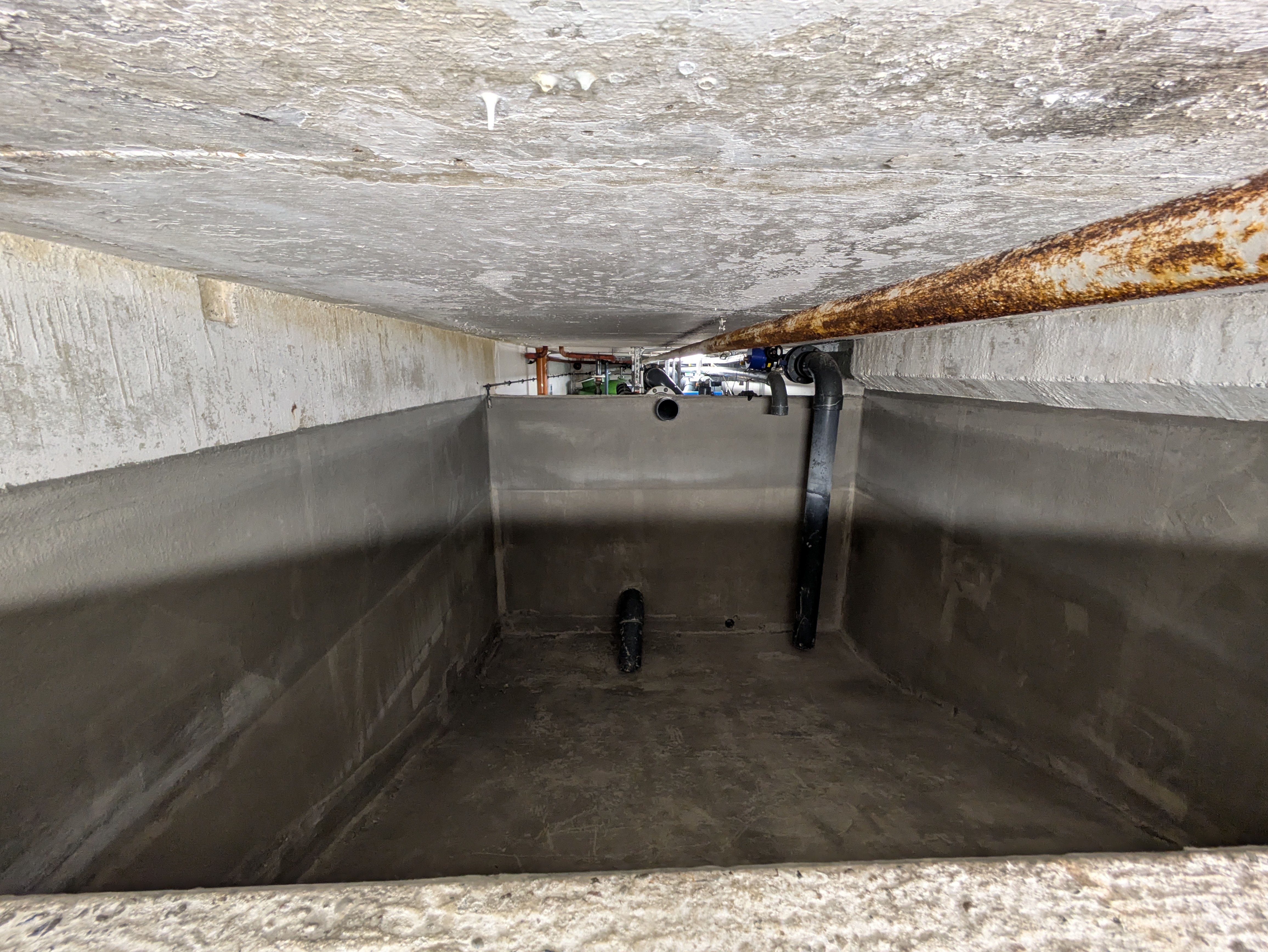 oben hin offene Schwallwasserbeckens (Schwallwasserbecken dient der Aufnahme und Zwischenspeicherung